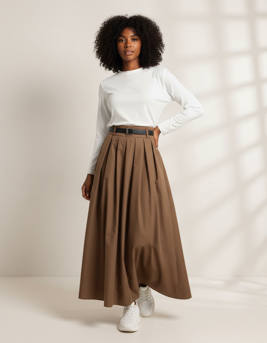 L'Élégance Sans Effort : La Jupe Longue Plissée Fluide