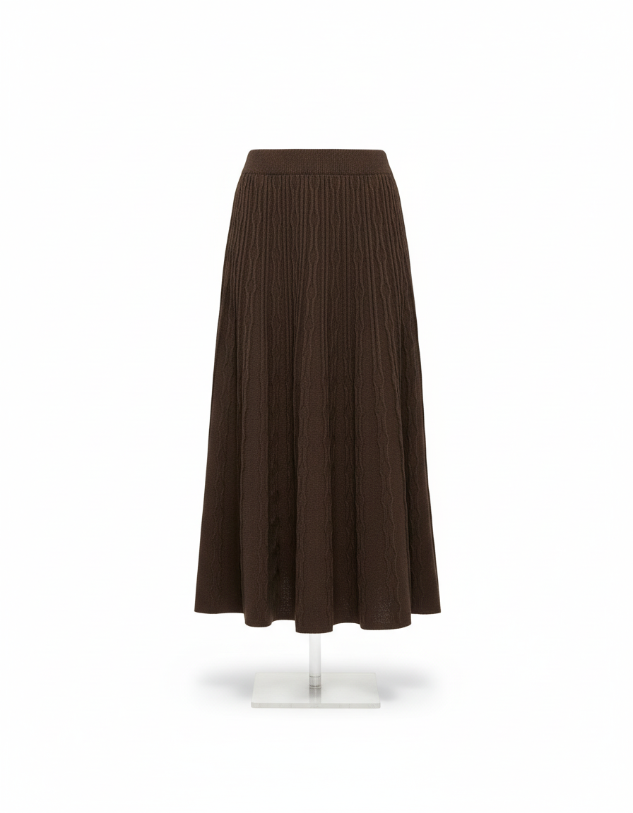 Découvrez la Jupe Longue Marron Texturée Élégante, une pièce maîtresse conçue pour allier sophistication et bien-être. Sa maille fluide et douce, spécialement sélectionnée pour l'hiver, vous enveloppe d'une chaleur réconfortante tout en garantissant une liberté de mouvement inégalée. Le tombé impeccable de cette jupe plissée sublime votre silhouette avec une élégance naturelle, s'adaptant à vos formes sans jamais les contraindre. Marchez, dansez, vivez : elle accompagne chacun de vos pas avec une grâce infinie, vous assurant un confort absolu du matin au soir.