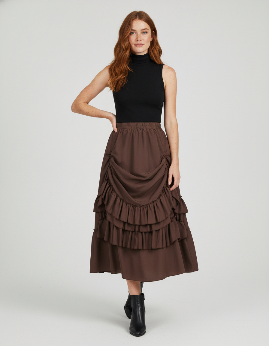 Jupe Longue Marron Volants Vintage : Le Charme Rétro Réinventé