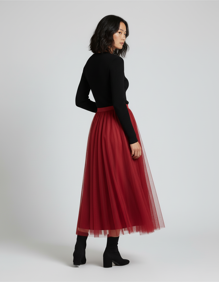 Ce qui distingue la Jupe Longue Mastour, c'est son équilibre parfait entre volume spectaculaire et fluidité délicate. Le tulle superposé crée une texture riche et une profondeur de couleur bordeaux captivante, garantissant un tombé impeccable qui flatte toutes les morphologies. Idéale pour les occasions spéciales comme pour sublimer le quotidien, elle se marie aisément avec un pull ajusté pour un look urbain chic ou une blouse soyeuse pour une élégance intemporelle. Affirmez votre style avec une pièce qui allie discrétion, luxe et modernité.