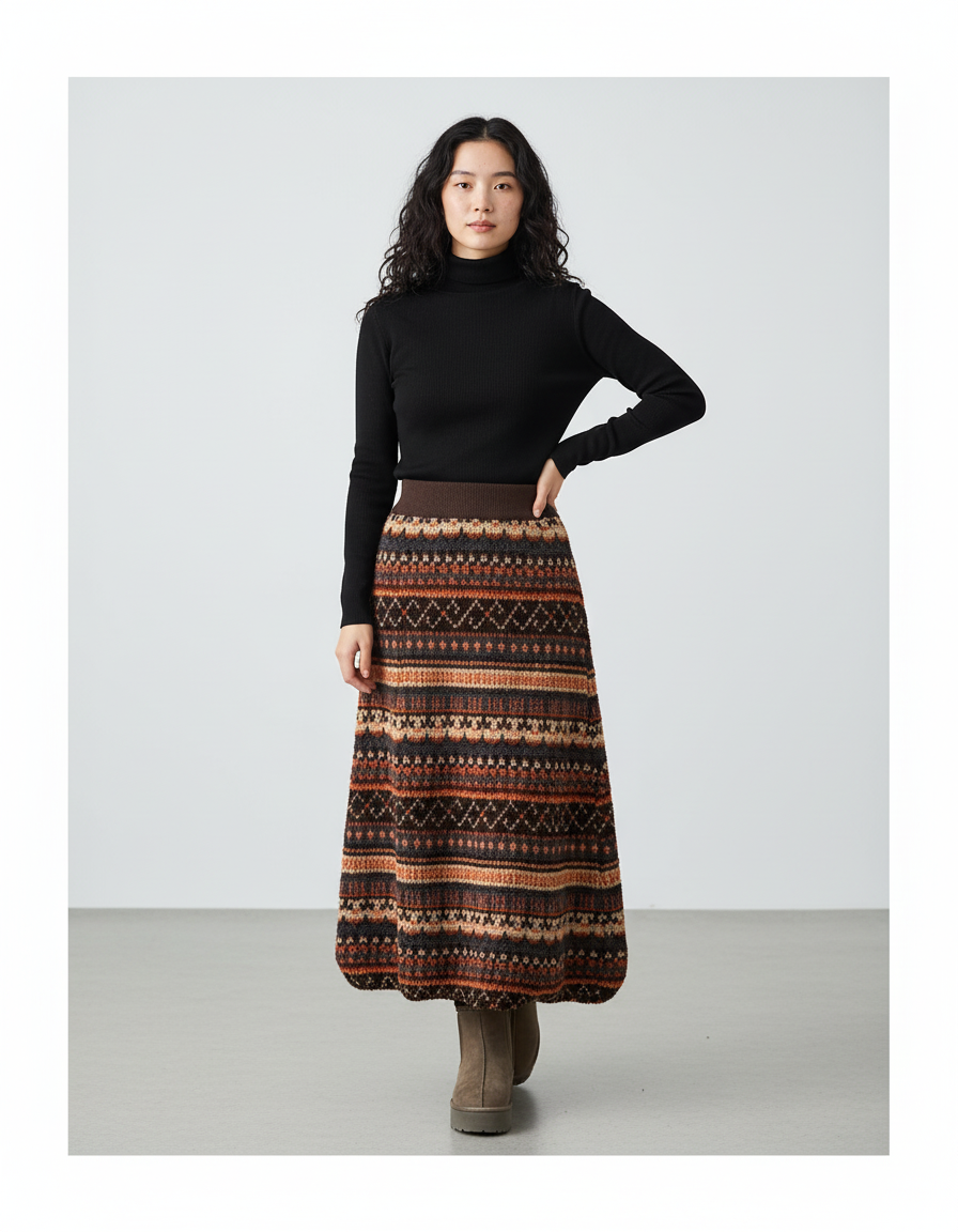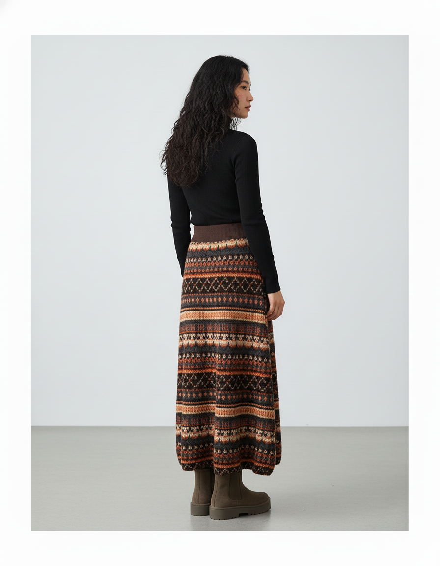 La Jupe Longue Motif Aztèque : L'Élégance Chaleureuse de l'Hiver