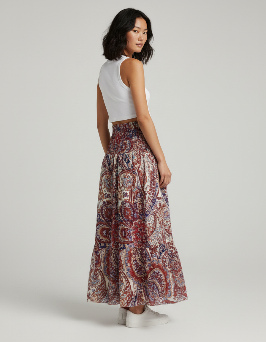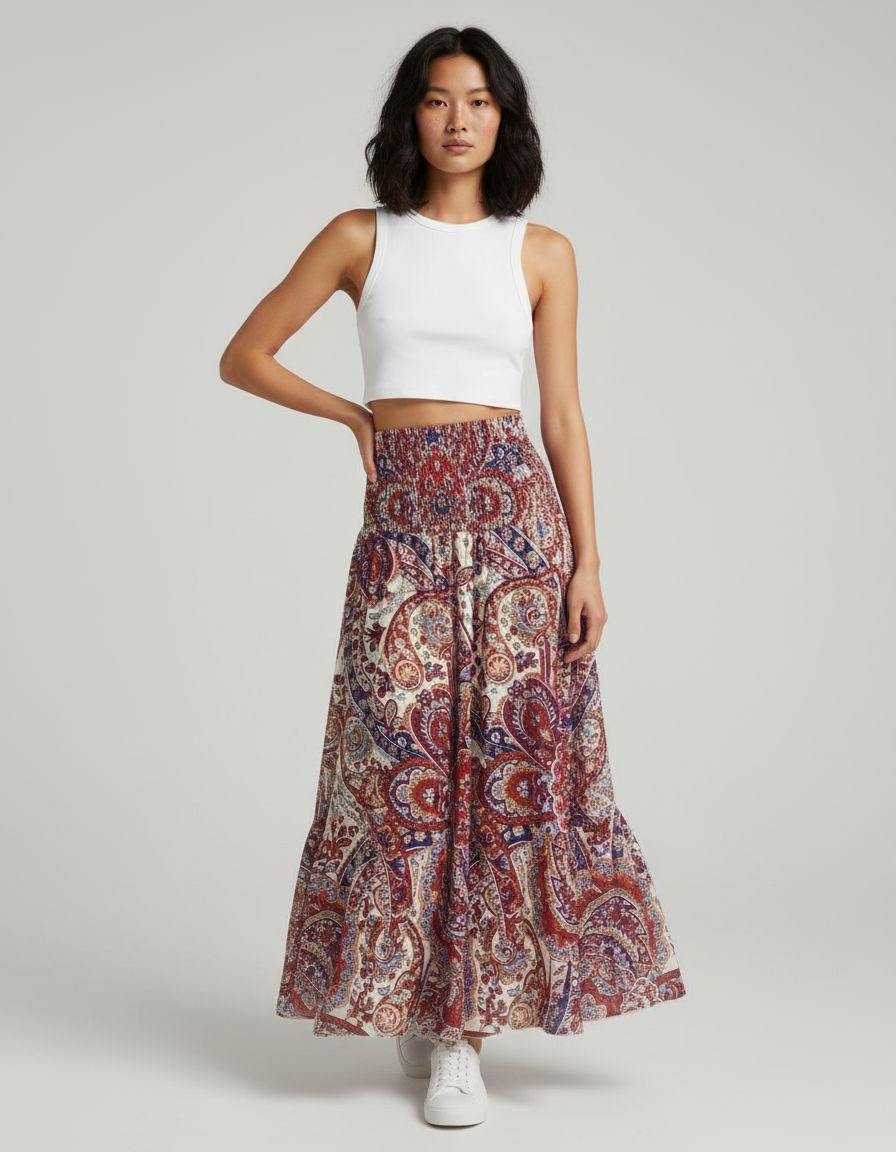Jupe Longue Motif Fluide Bohème : L'Élégance Décontractée Redéfinie