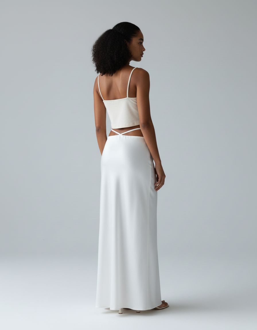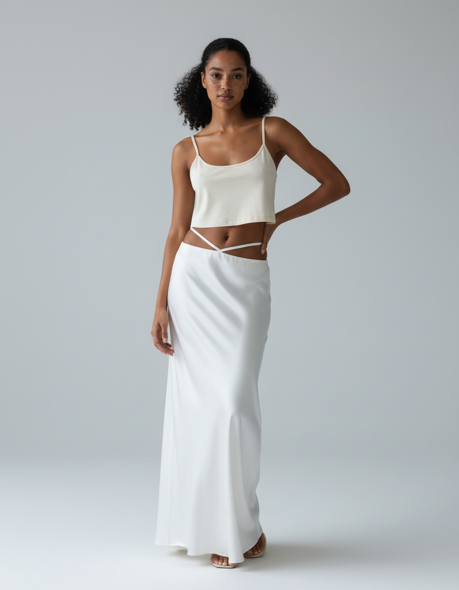 L'Élégance Fluide : La Jupe Longue Moulante Blanche