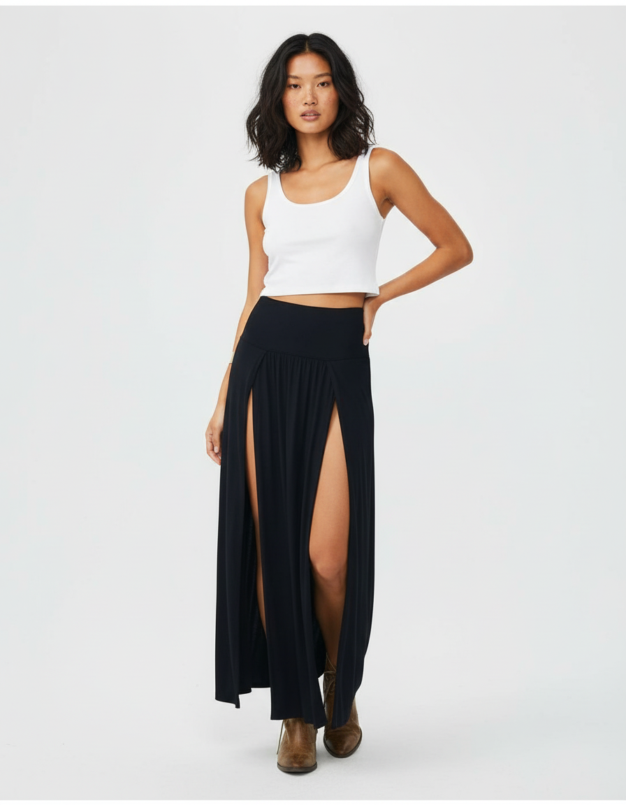 Jupe Longue Moulante Fendue : Taille Haute et Double Fente