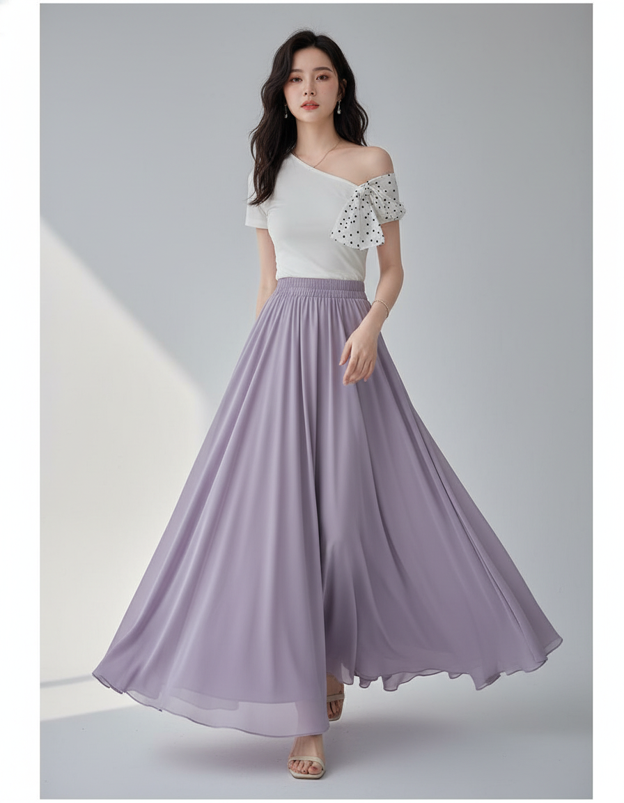 La Jupe Longue Mousseline Lavande Fluide : L'Art de la Grâce Décontractée