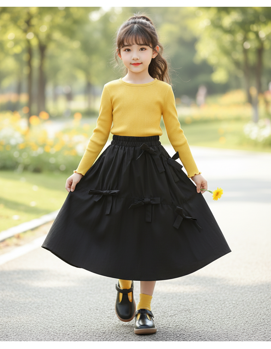Jupe Longue Noire À Nœuds Chic : L'Élégance Redéfinie pour la Jeune Génération
