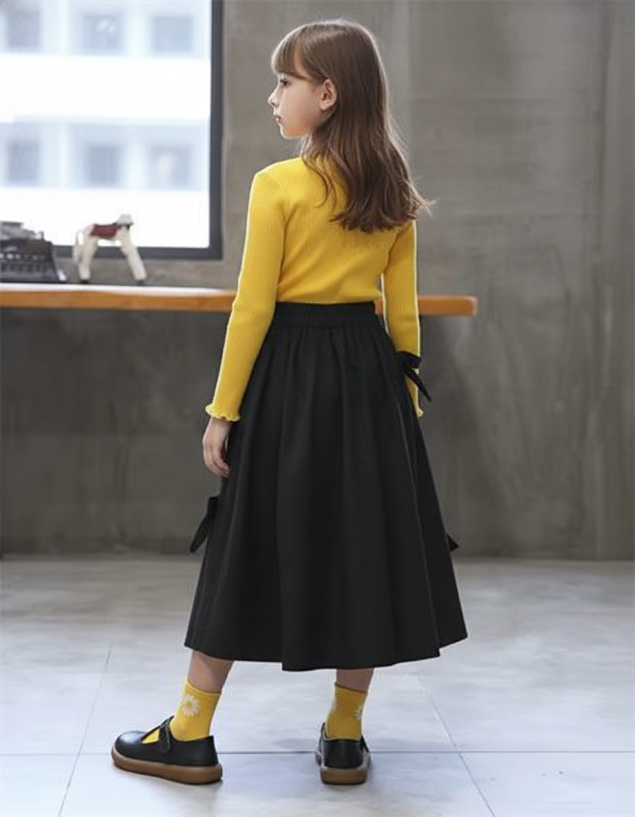Jupe Longue Noire À Nœuds Chic pour Enfant