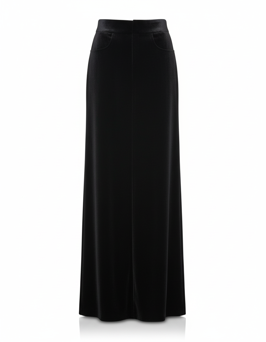 Cette élégante jupe longue noire en velours offre un style raffiné et un confort inégalé.