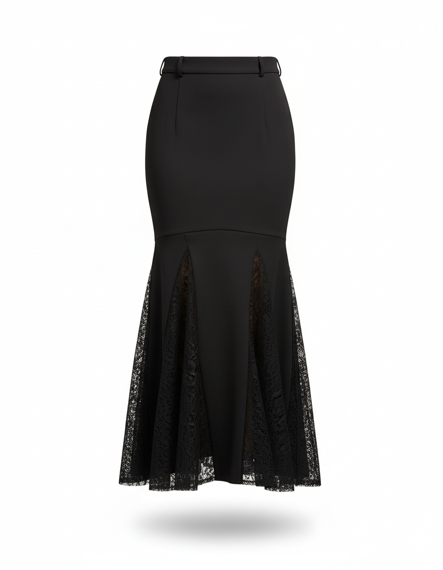 Jupe Longue Noire Dentelle Chic – Coupe Sirène
