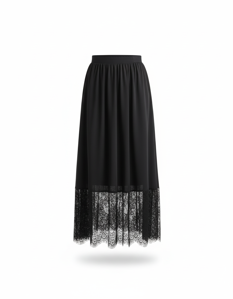 Usage de la **Jupe Longue Noire Dentelle Élégante Bohème**