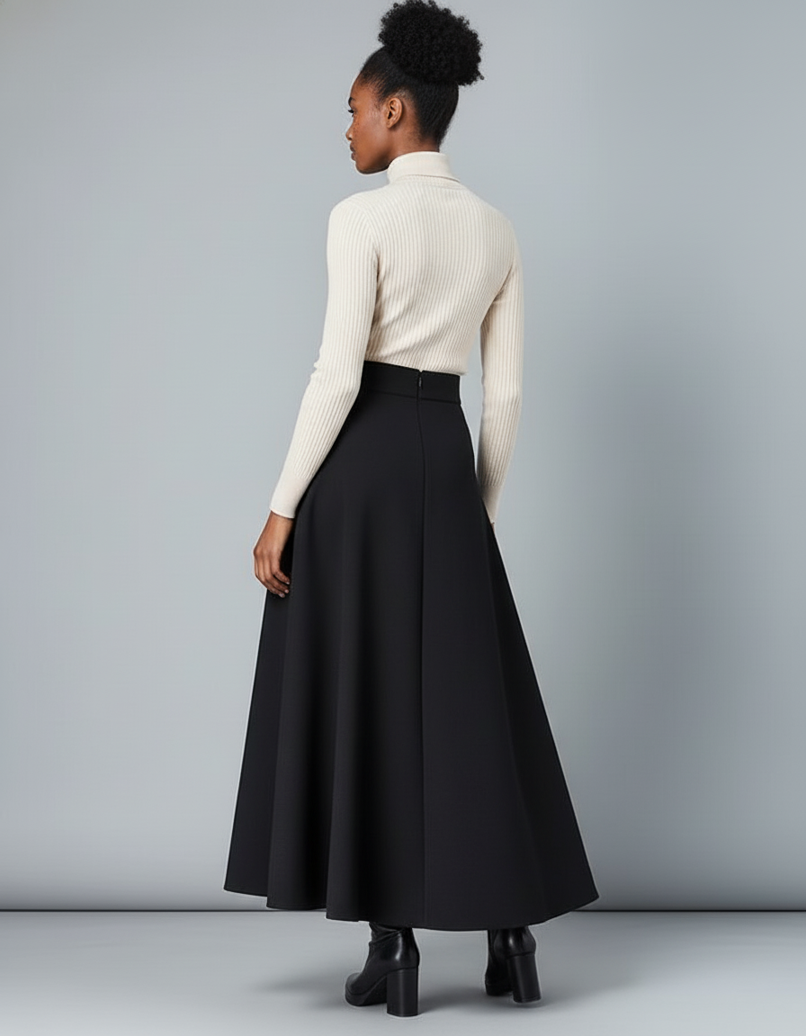 Jupe Longue Noire Évasée Élégante : L'Essence du Chic Hivernal