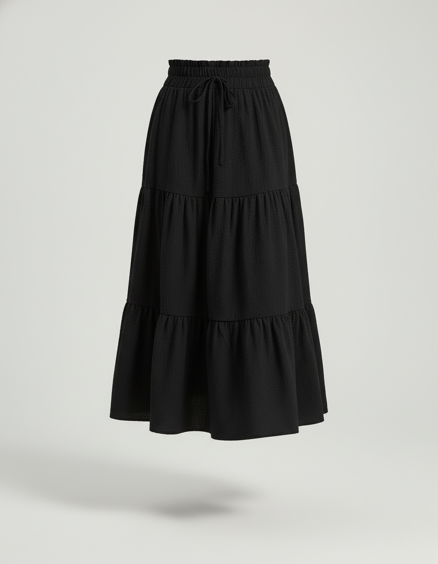 La Jupe Longue Noire Fluide Superposée : L'Essence du Chic Moderne