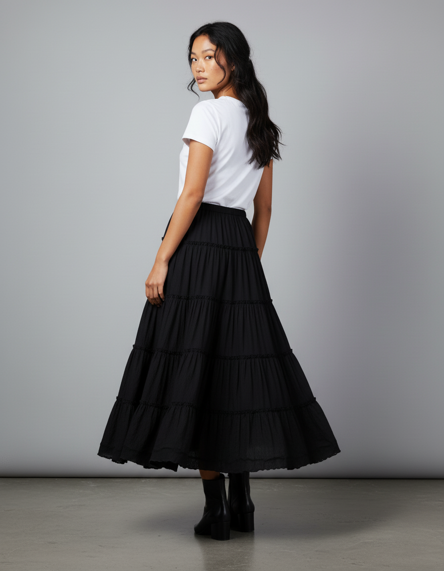 La Jupe Longue Noire Fluide Volants : L'Élégance du Mouvement
