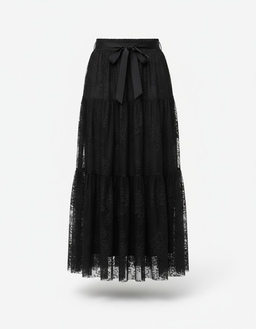 Jupe Longue Noire Gitane en Dentelle Superposée