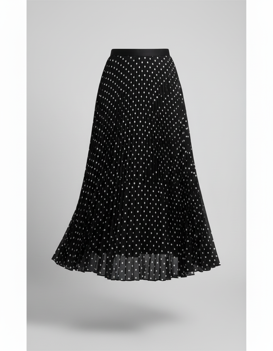 Adoptez un style chic et intemporel avec notre jupe longue noire à pois blancs.
