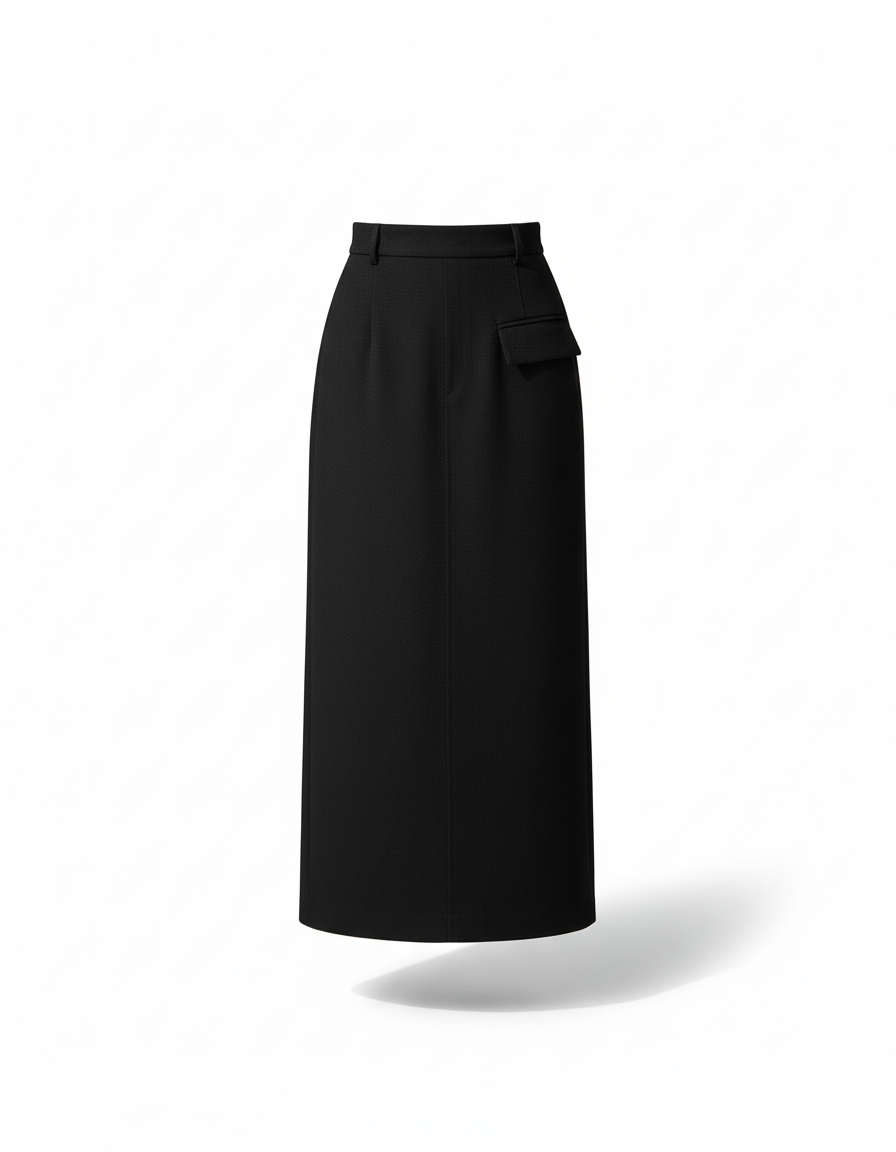 Jupe Longue Noire Poches Élégante : L'Hiver en Toute Sophistication