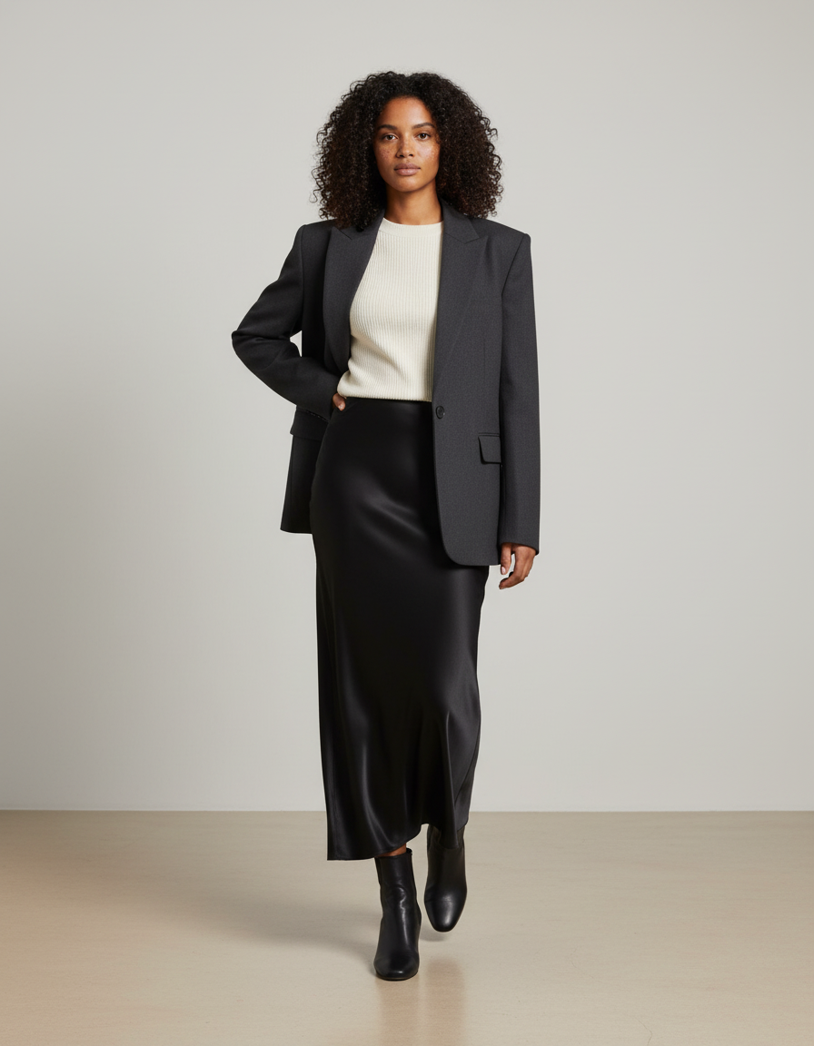 La Jupe Longue Noire Satinée : Votre Alliée Élégance Intemporelle