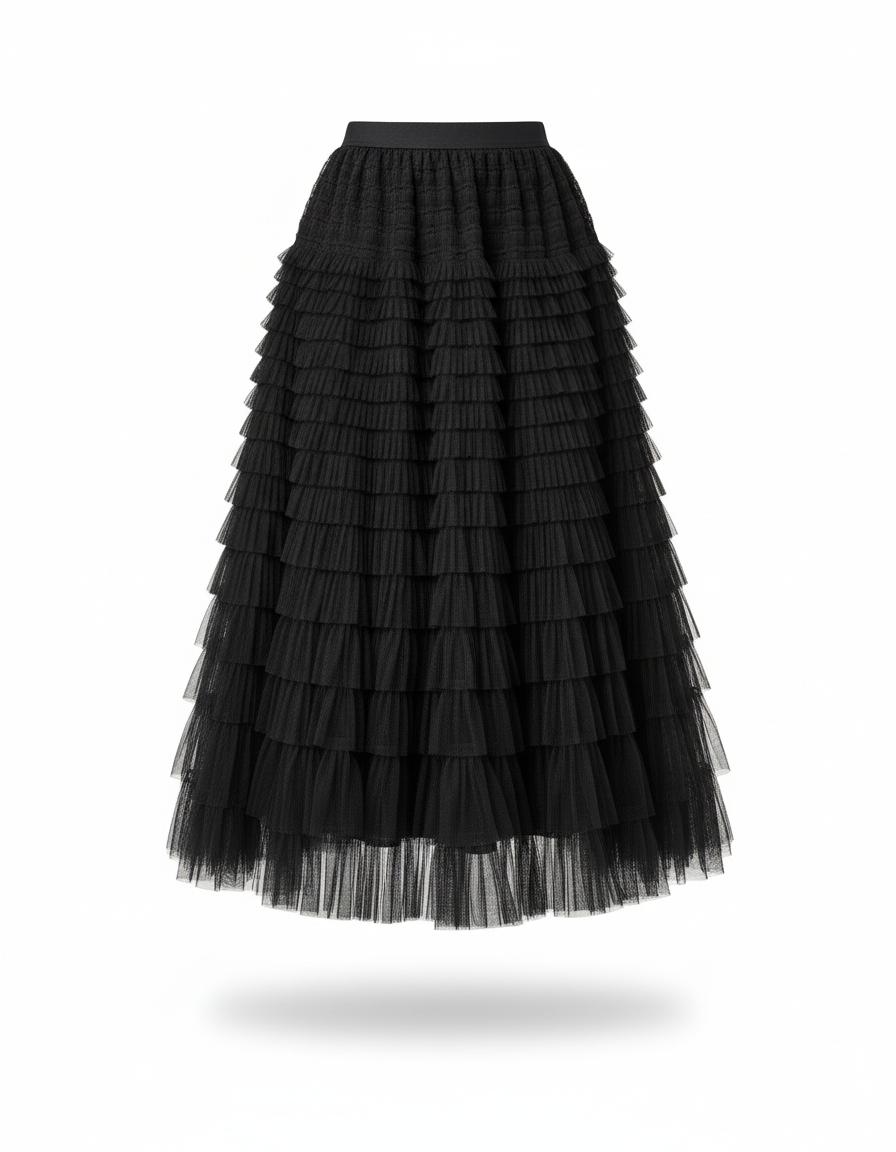 Jupe Longue Noire Tulle Volants : L'Élégance Audacieuse pour la Femme Moderne