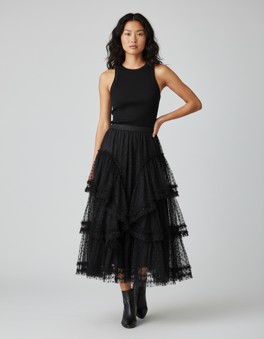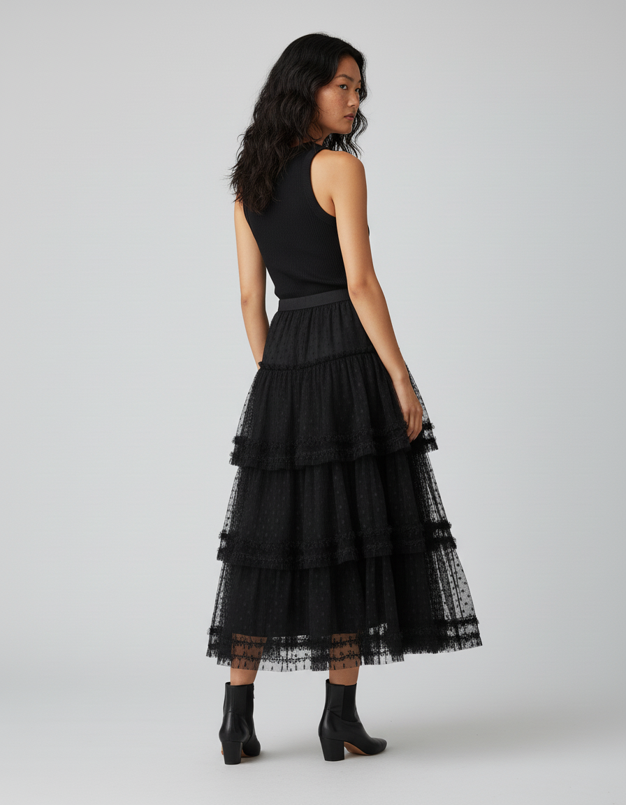 Jupe Longue Noire Volant : L'Élégance Aérienne Réinventée