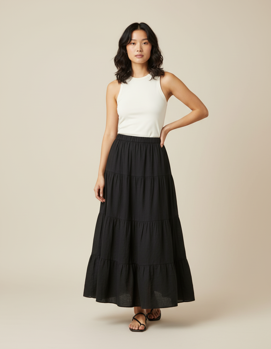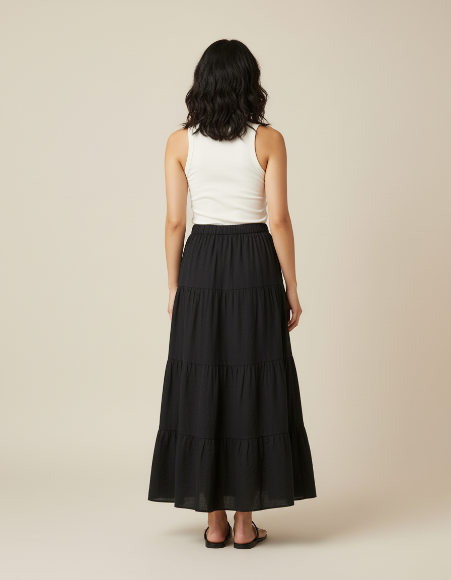 Jupe Longue Noire Volants Fluide : L'Élégance Décontractée Réinventée