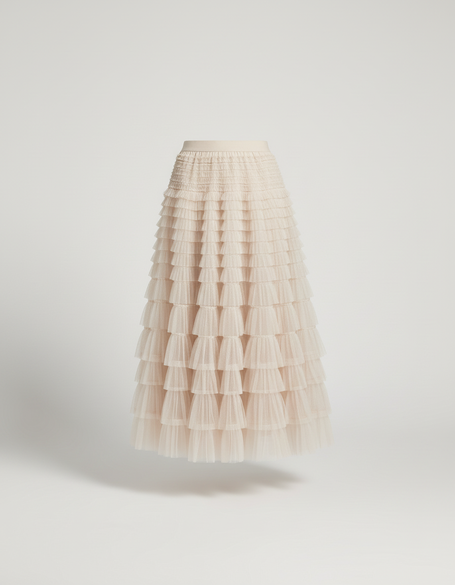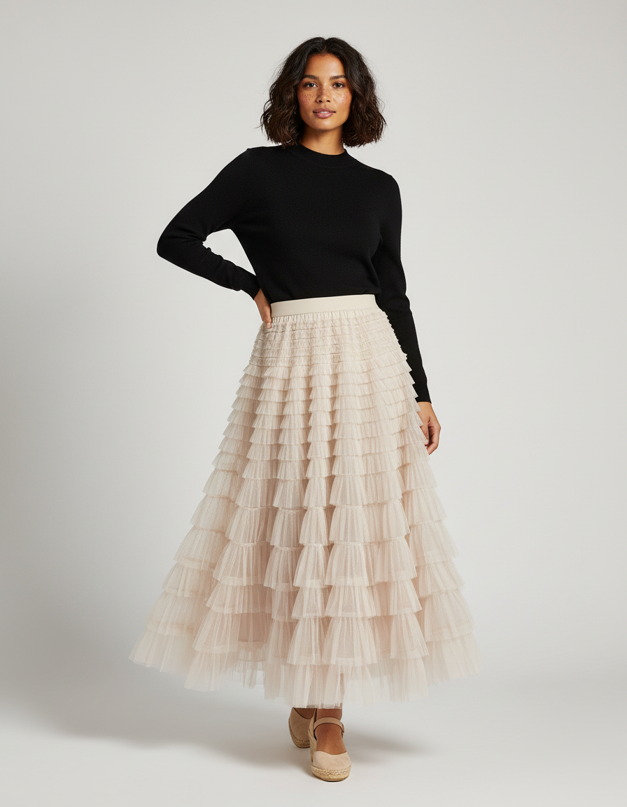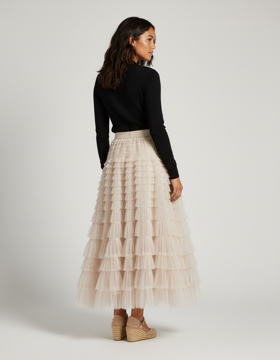 Jupe Longue Nude Volants Fluide : L'Élégance en Mouvement