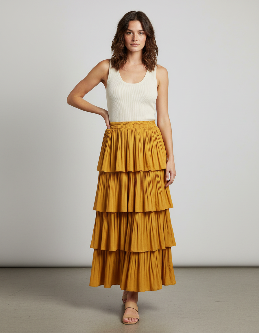 L'Essence du Style Bohème-Chic : Notre Jupe Longue Ocre Volants