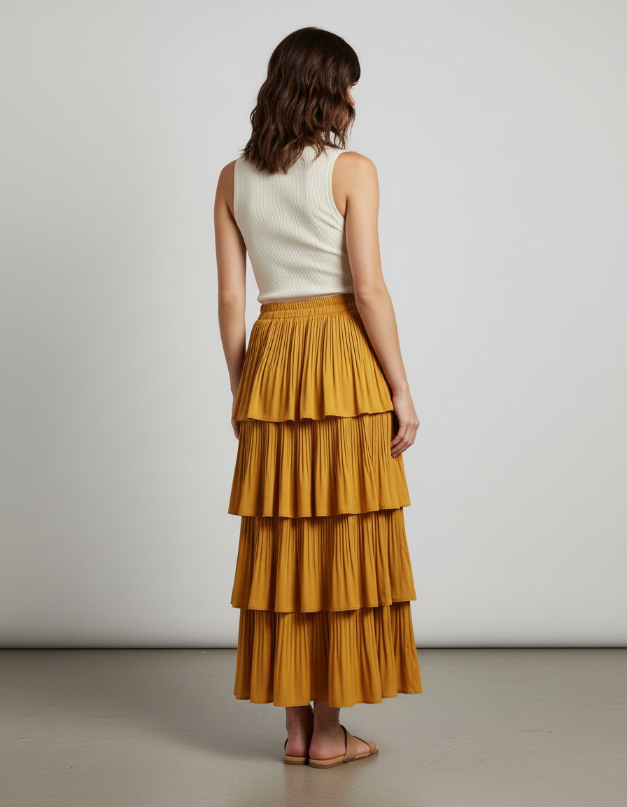La Jupe Longue Ocre Bohème Volants : L'Essence du Chic Naturel