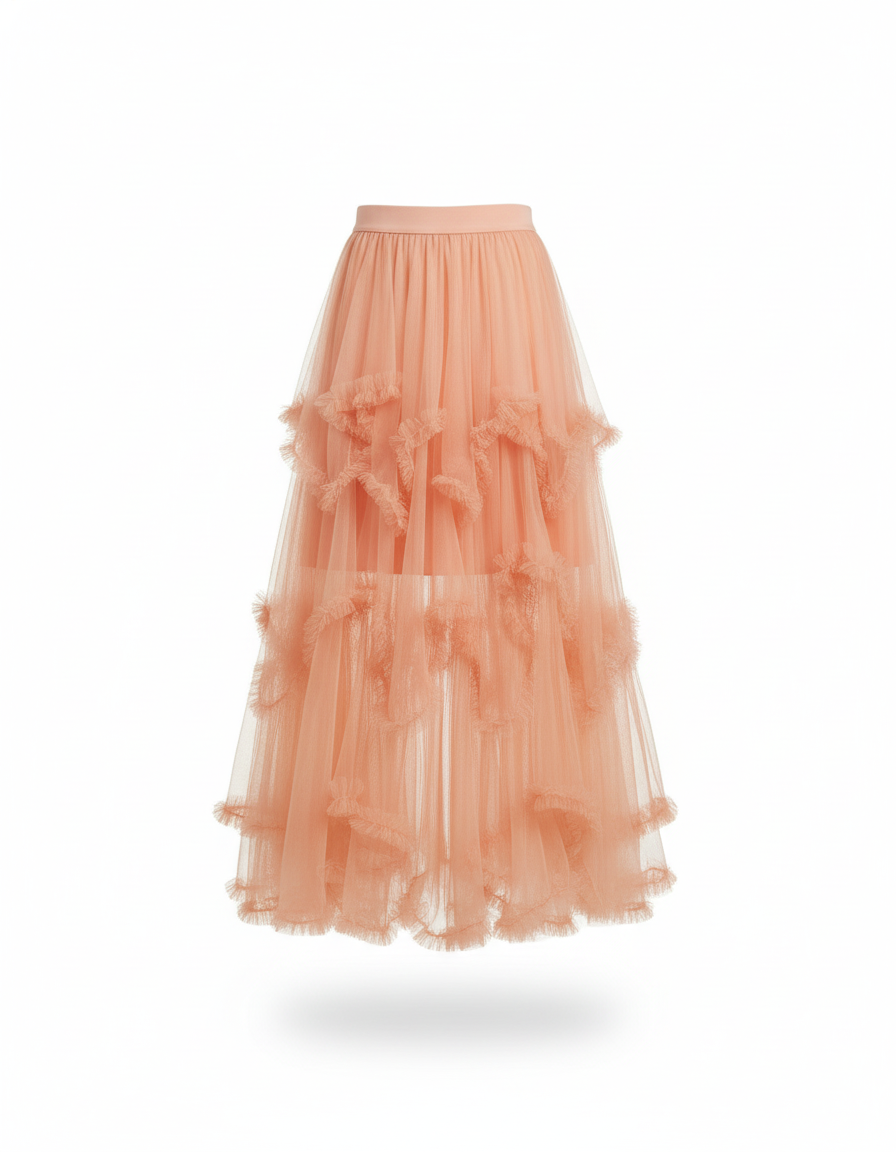 La Jupe Tulle Volantée : L'Éclat Corail au Sommet de l'Élégance