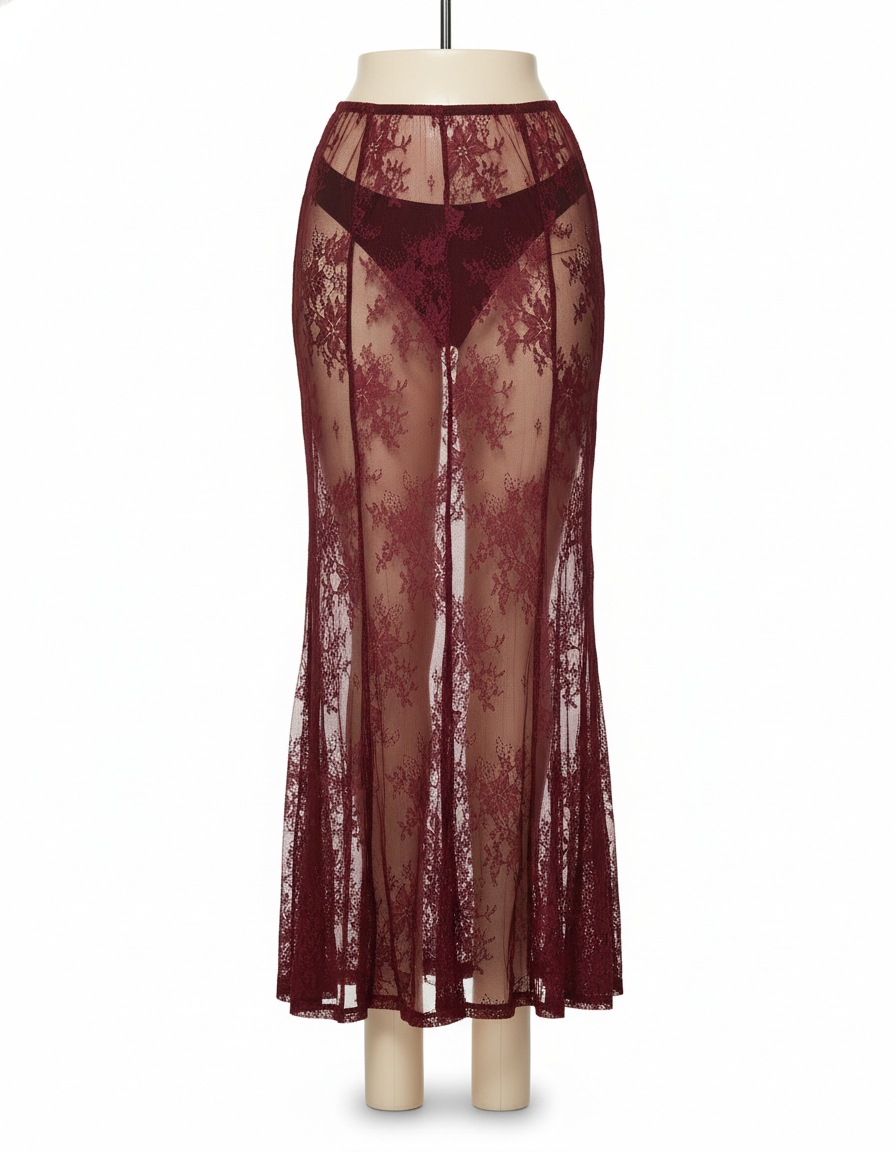 Conçue pour la femme qui ose sublimer sa silhouette avec une élégance inédite, notre Jupe Longue Ouverte en dentelle bordeaux est une pièce maîtresse de sophistication moderne. Son design fluide et sa matière diaphane révèlent subtilement la jambe, offrant une allure captivante sans jamais compromettre le raffinement. Chaque mouvement se transforme en une danse fluide, un jeu d'ombre et de lumière qui souligne votre prestance naturelle et vous assure de faire sensation avec une confiance inébranlable.