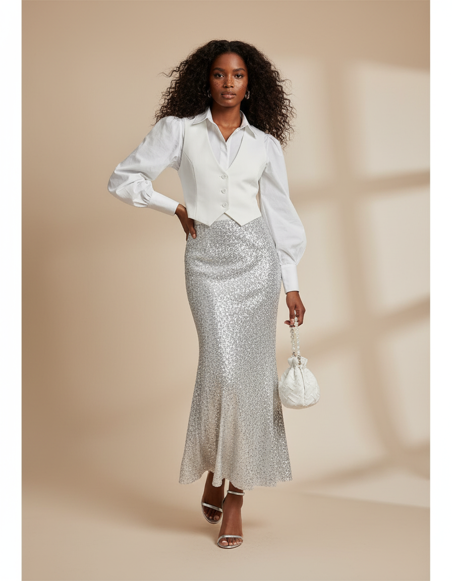 Usage de la Jupe Longue Pailletée Argentée Élégante