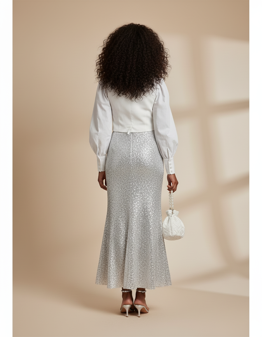 Jupe Longue Pailletée Argentée Élégante : Votre Éclat Inoubliable