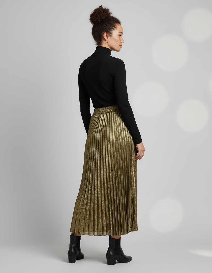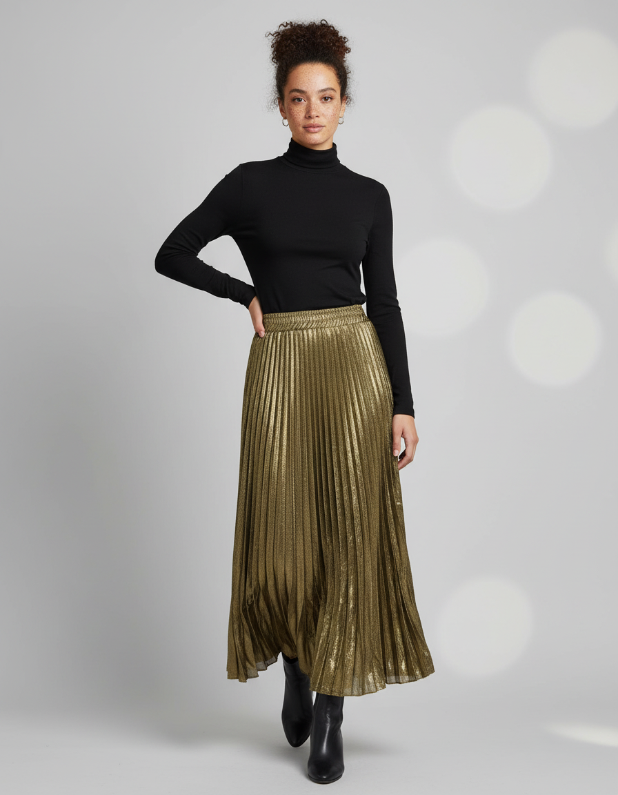 Révélez Votre Éclat avec Notre Jupe Plissée Dorée