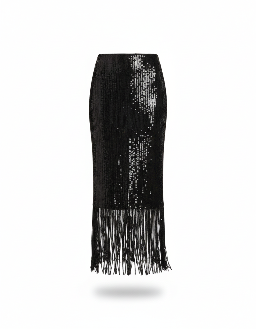 Illuminez Chaque Soirée avec la Jupe Longue Paillettes Franges Chic