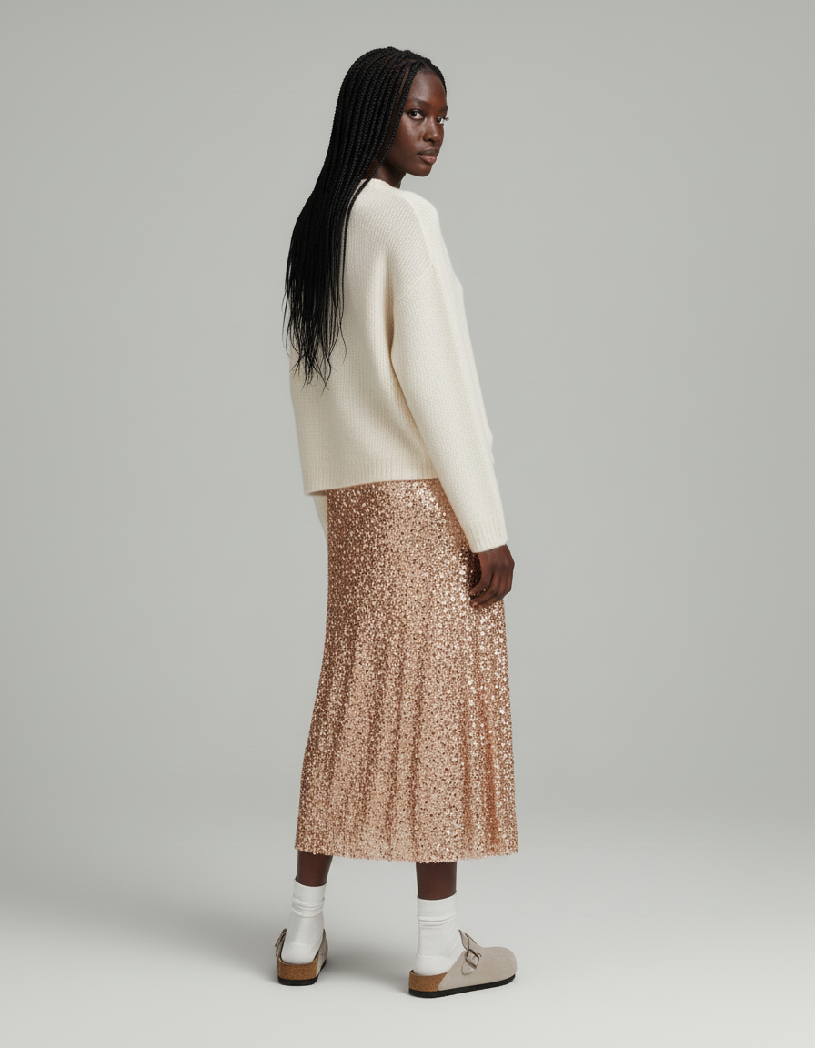 La Jupe Longue Paillettes Rose Gold : Votre Éclat Inoubliable