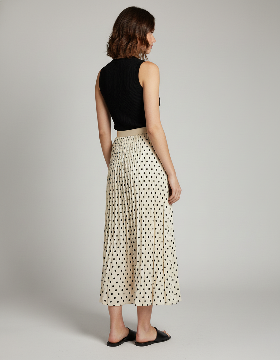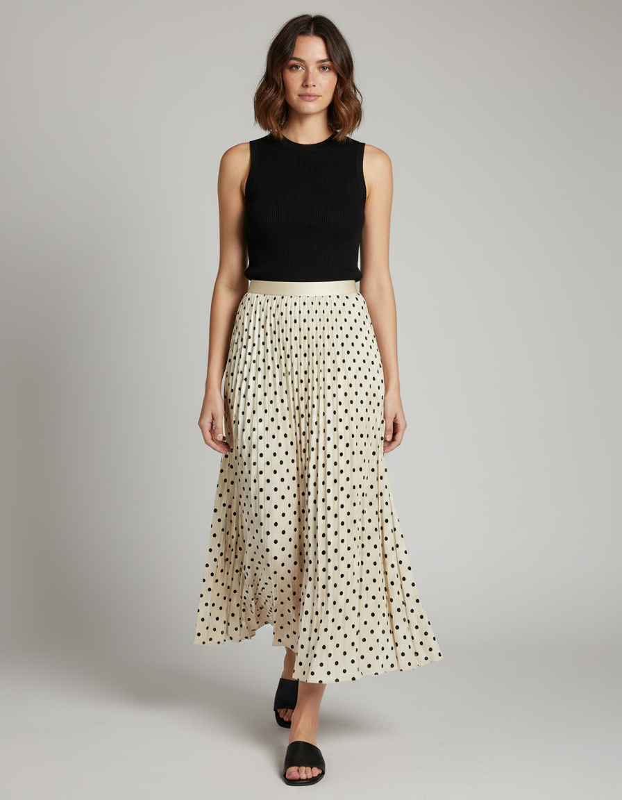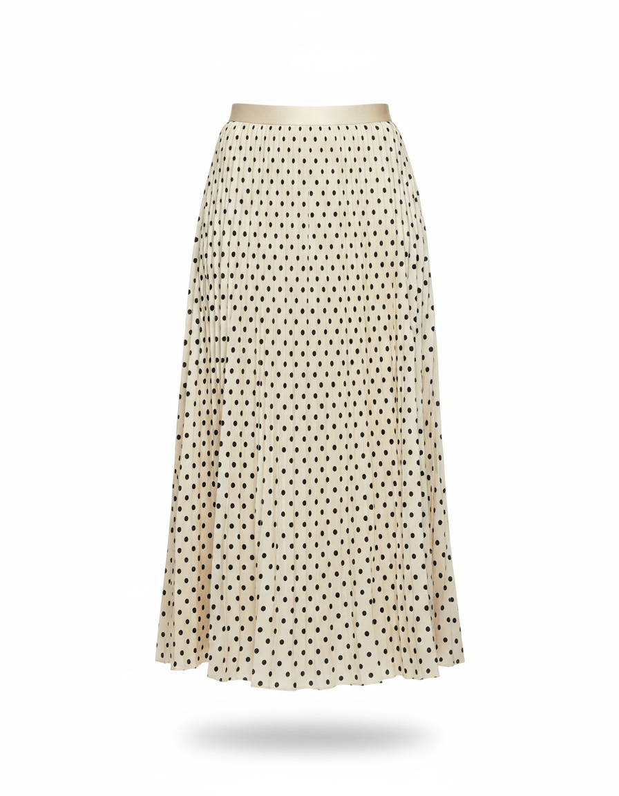 L'Élégance Décontractée Redéfinie : Jupe Longue Plissée à Pois