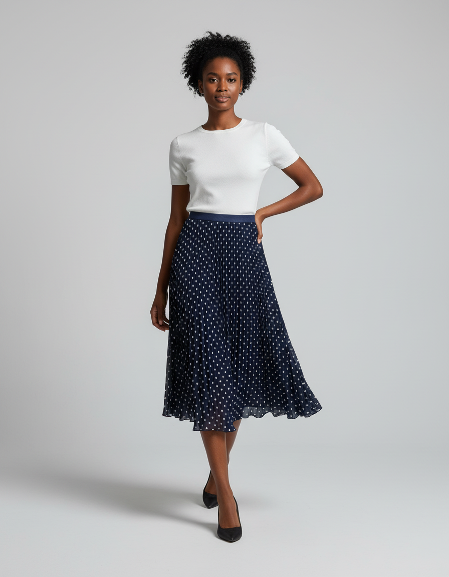 Découvrez l'Élégance Intemporelle : La Jupe Plissée à Pois, Votre Signature Style