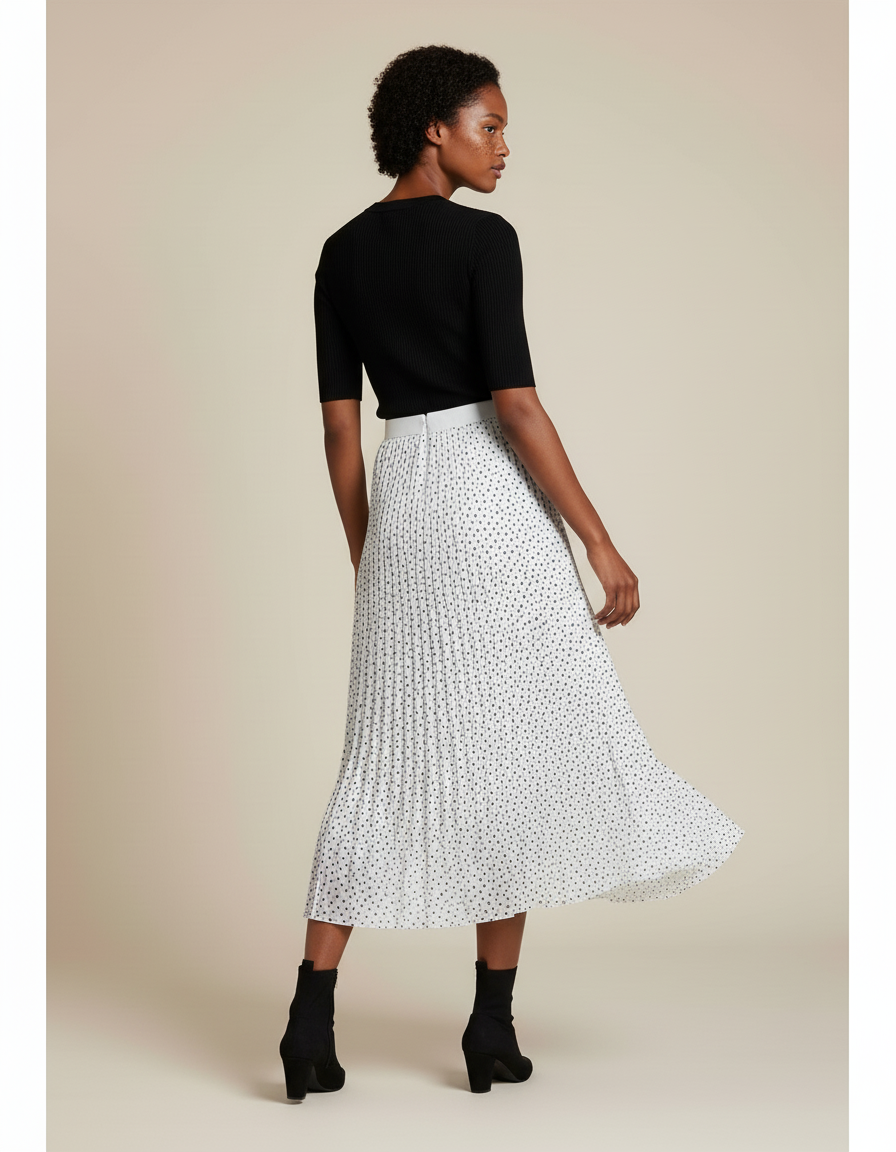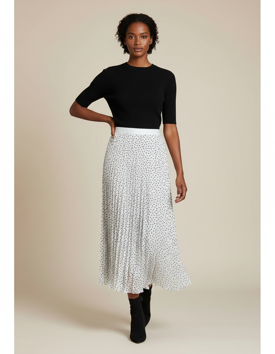 Jupe Longue Plissée À Pois Fluide Élégante