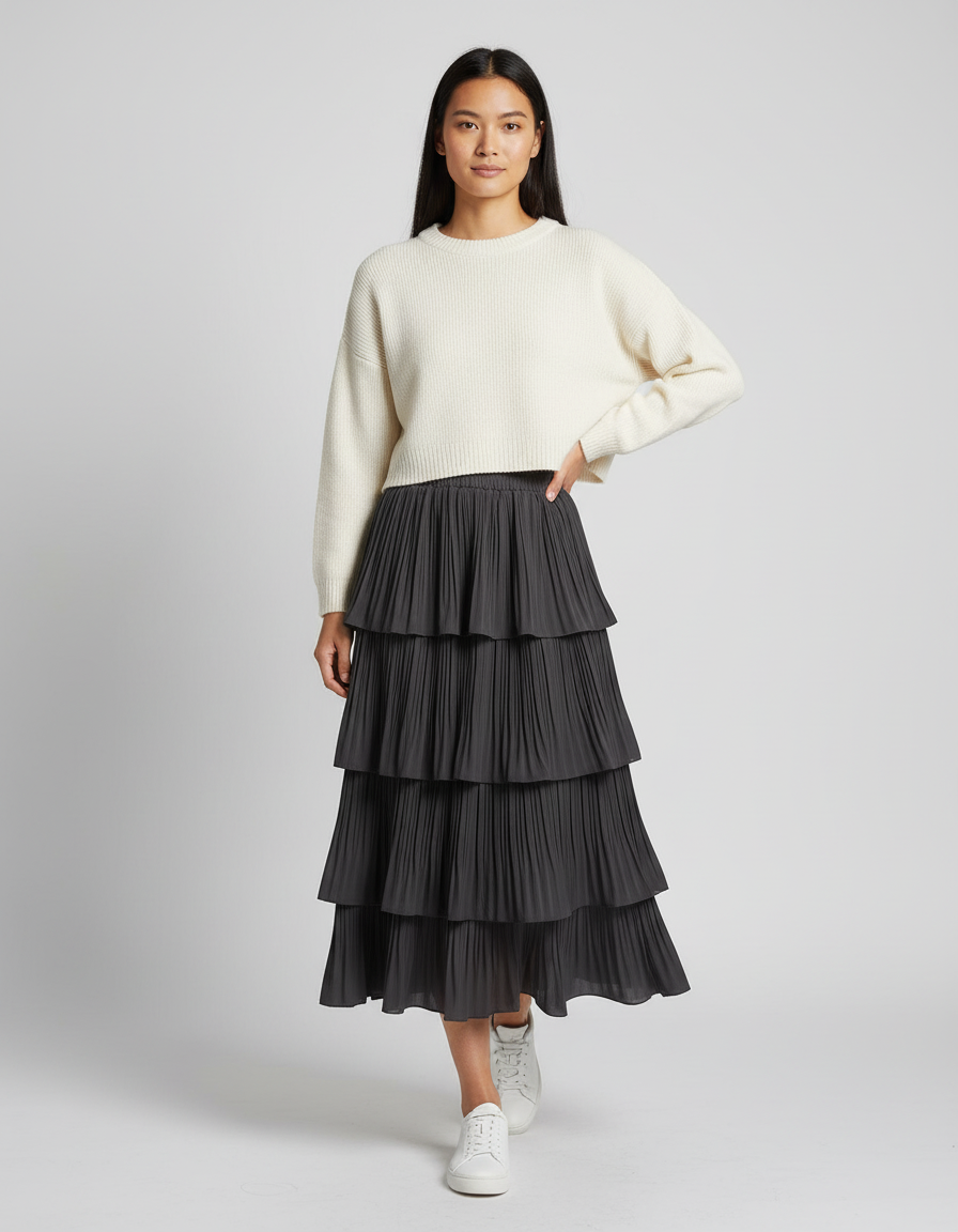 Jupe Longue Plissée À Volants Décontractée : L'Élégance Fluide au Quotidien