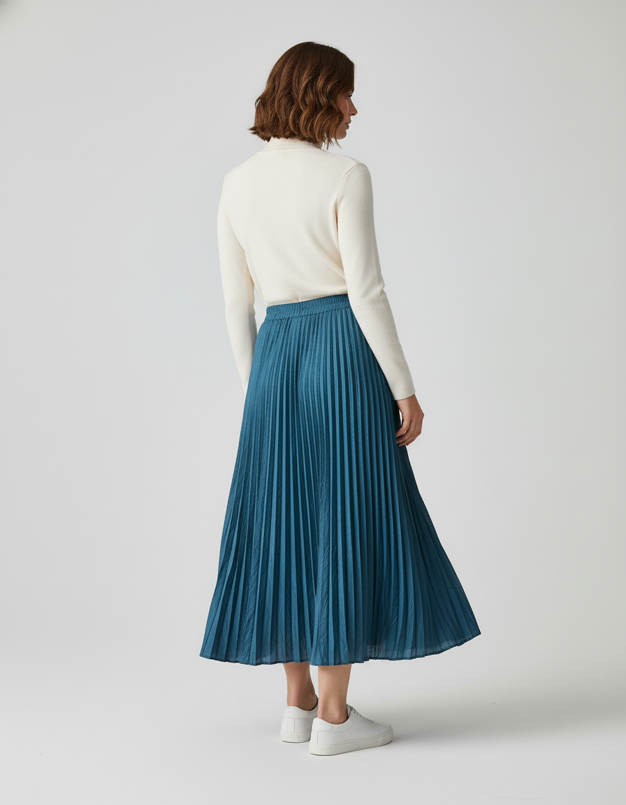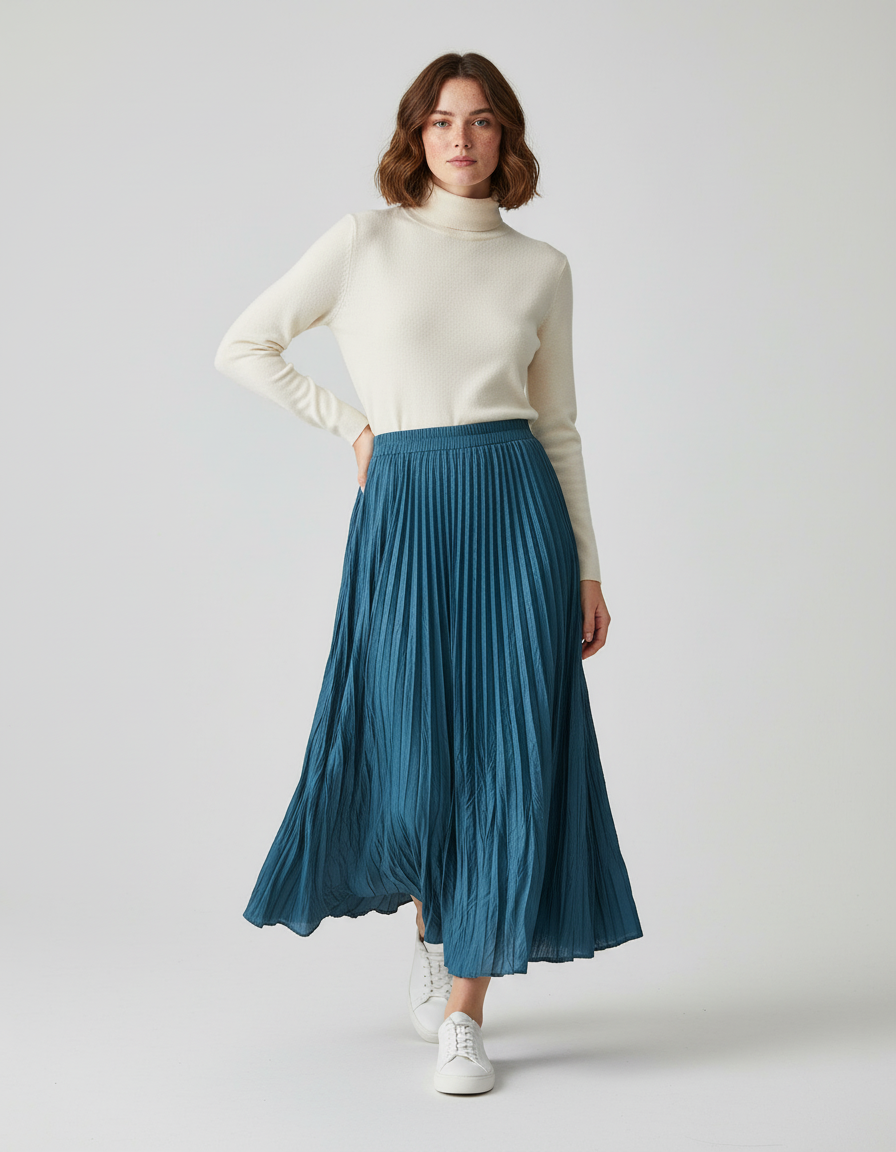 Jupe Longue Plissée Bleu Canard Fluide : L'Élégance en Mouvement