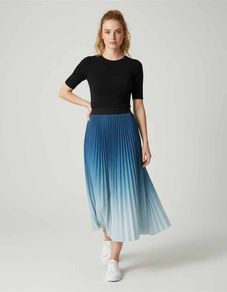 La Jupe Longue Plissée Dégradée Fluide : L'Élégance en Mouvement