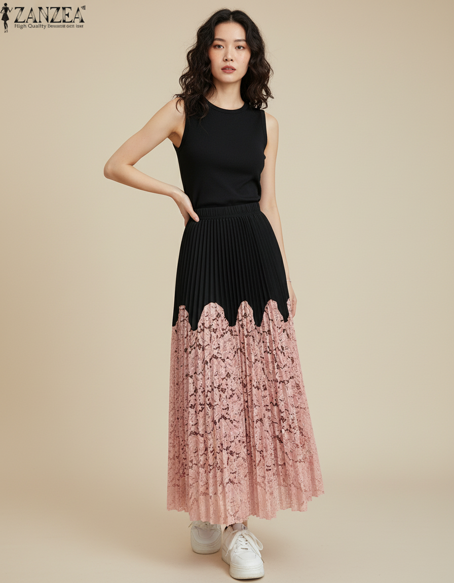 Usage de la Jupe Longue Plissée Dentelle Élégante