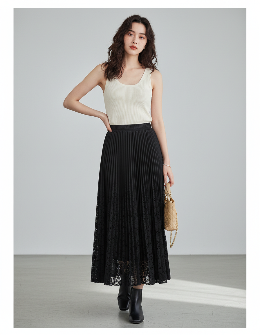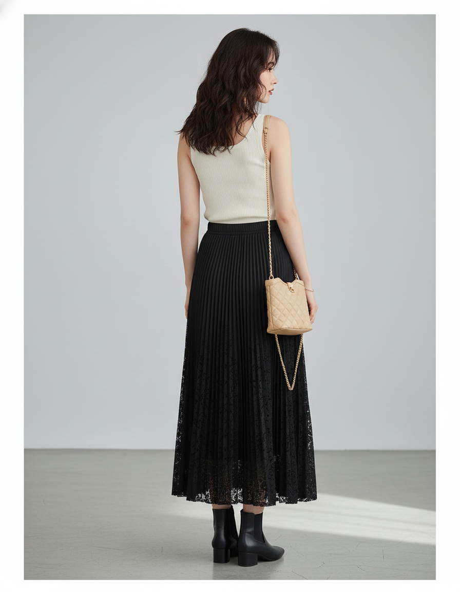 Jupe Longue Plissée Dentelle Élégante Mode : L'Art de la Distinction