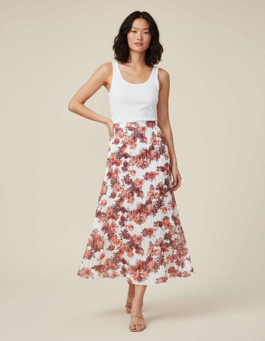 Votre Alliée Style : La Jupe Plissée Fleurie, Élégance et Mouvement