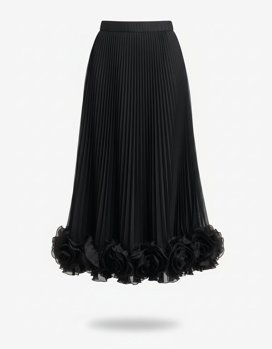 L'Élégance Redéfinie : La Jupe Plissée Fleurs 3D