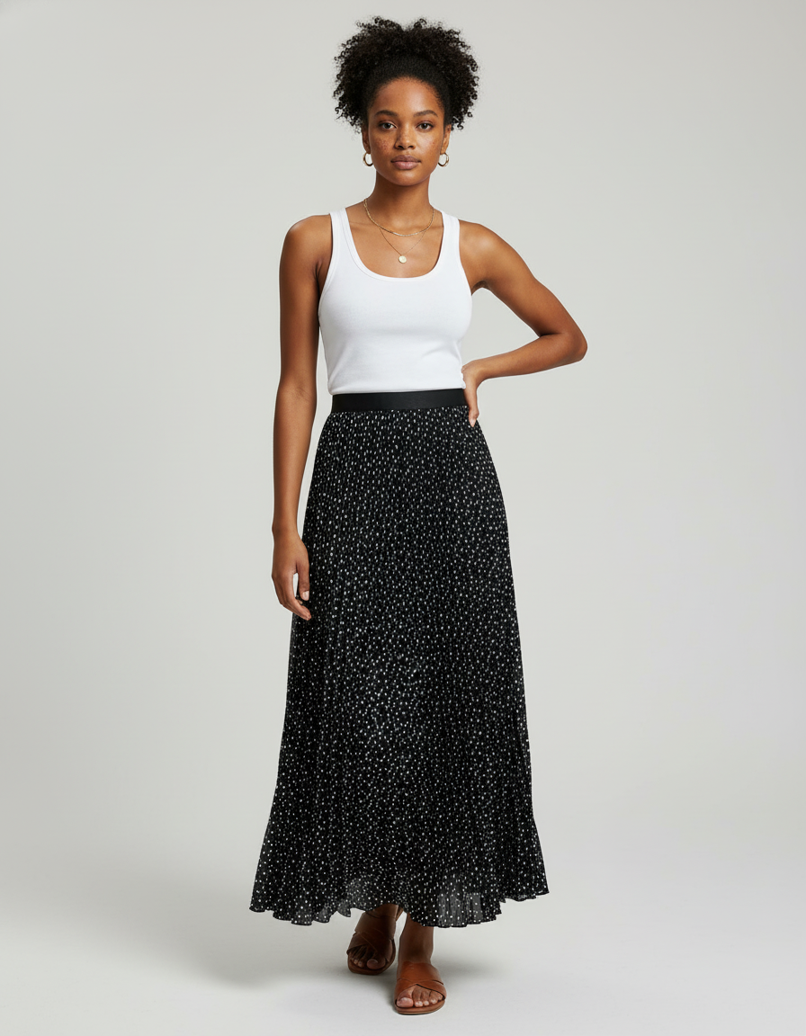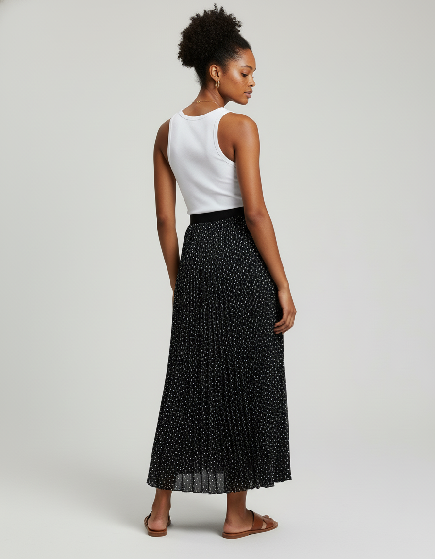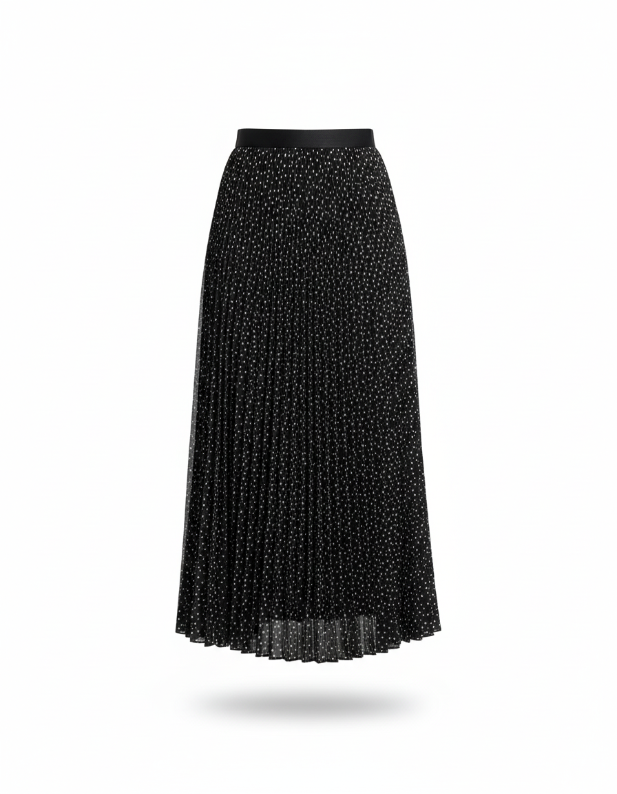La Jupe Longue Plissée Fluide à Pois : L'Élégance Redéfinie