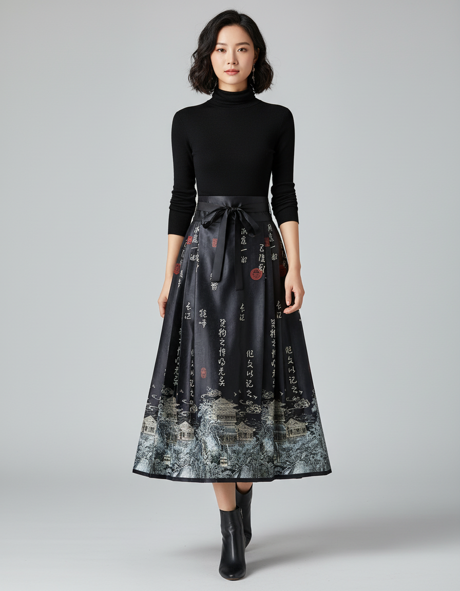 L'Élégance Majestueuse de la Jupe Plissée Imprimé Chinois