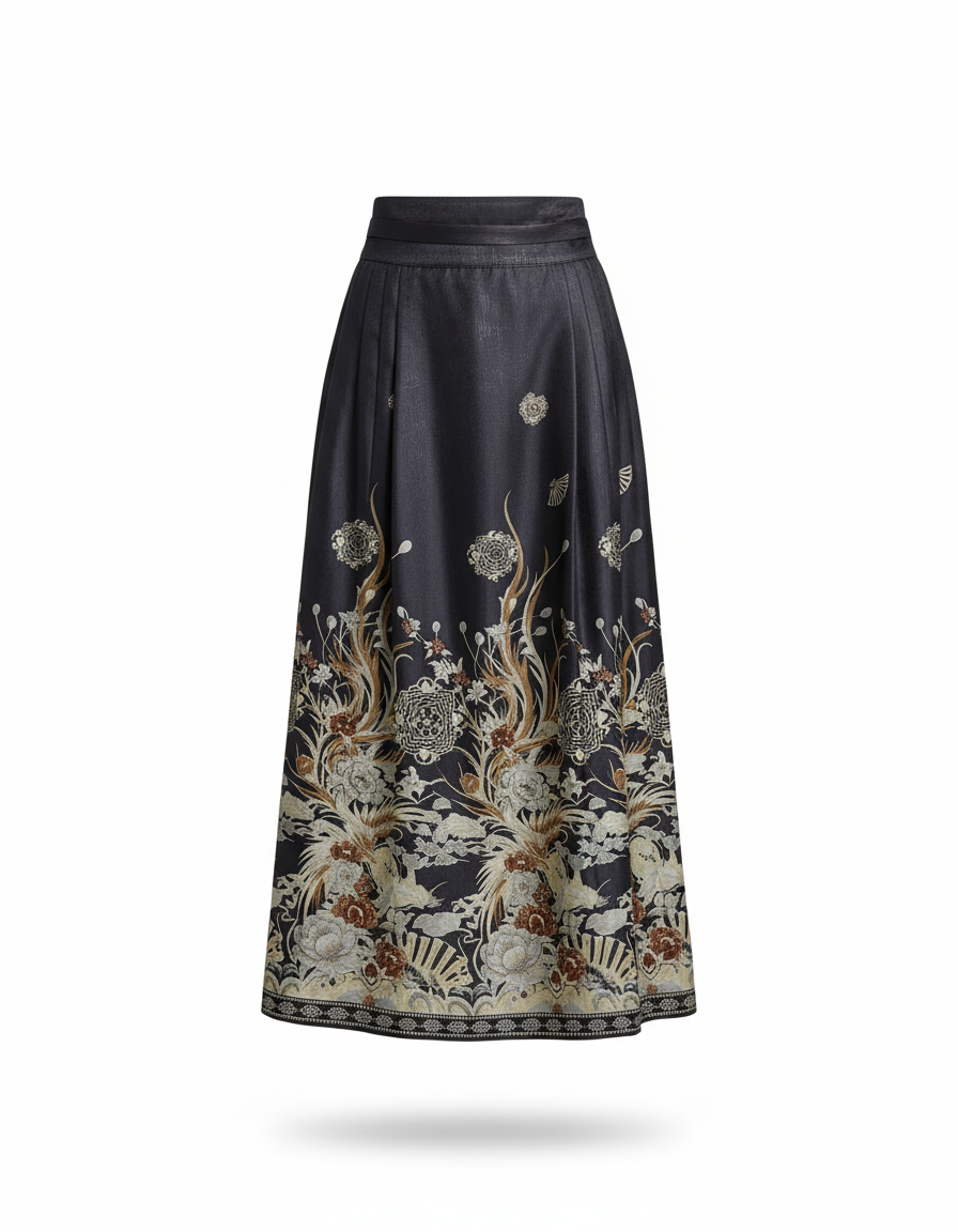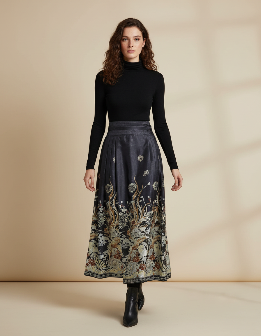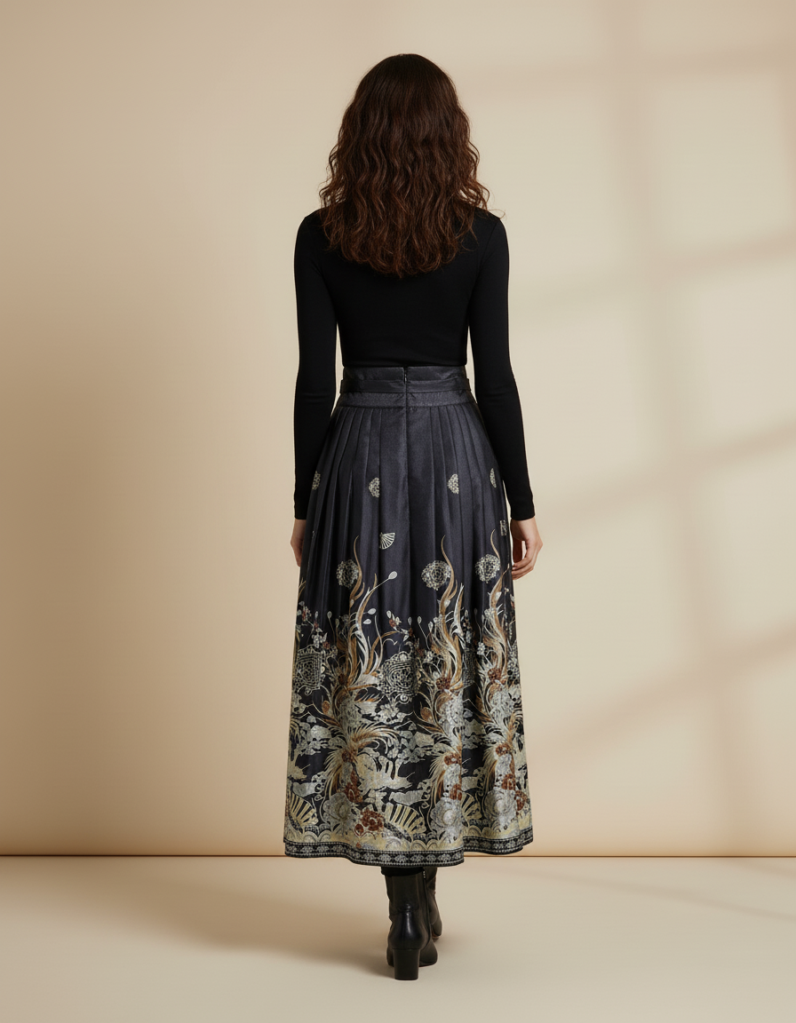 Élégance Captivante : La Jupe Longue Plissée Florale, Une Œuvre d'Art à Porter