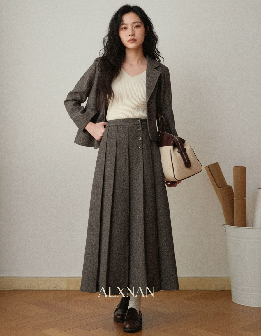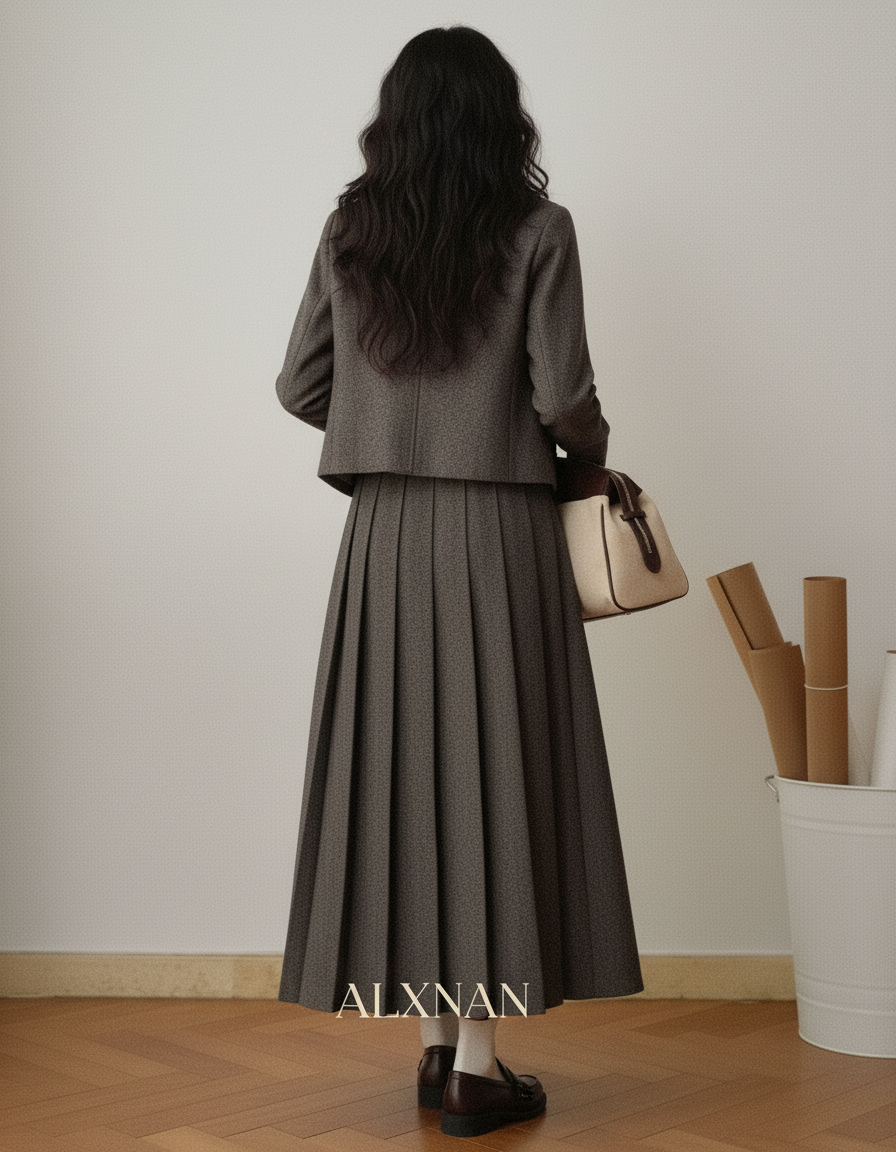 Jupe Longue Plissée Laine Élégante : L'Élégance Redéfinie