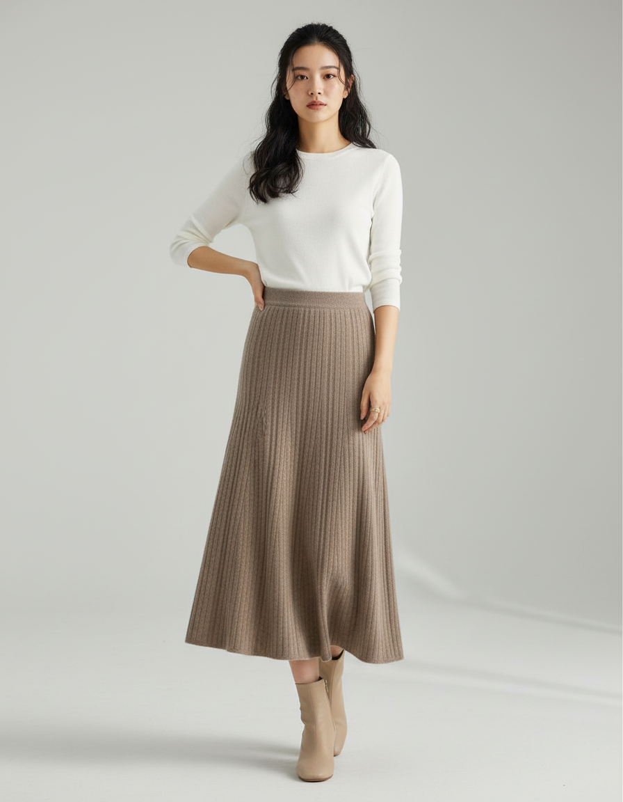 La Jupe Longue Plissée Marron Élégante se prête à une multitude de looks, s'adaptant à votre quotidien hivernal. Pour une allure décontractée-chic, associez-la à un pull en maille fine couleur crème et des bottines ton sur ton, comme illustré, pour une harmonie parfaite. Au bureau, mariez-la à une blouse fluide et un blazer ajusté pour un ensemble professionnel impeccable et raffiné. En soirée, osez un top en soie ou en dentelle, complété par des bijoux délicats et des talons, pour une sophistication discrète mais impactante. Sa taille haute sublime la silhouette, promettant une élégance naturelle en toute circonstance.