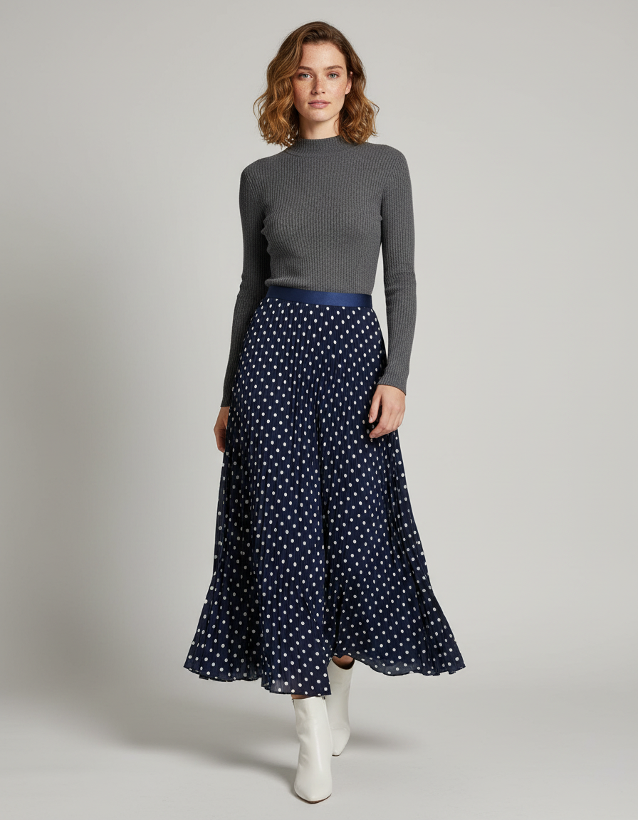 Jupe Longue Plissée Motif : L'Élégance du Mouvement Sublimé